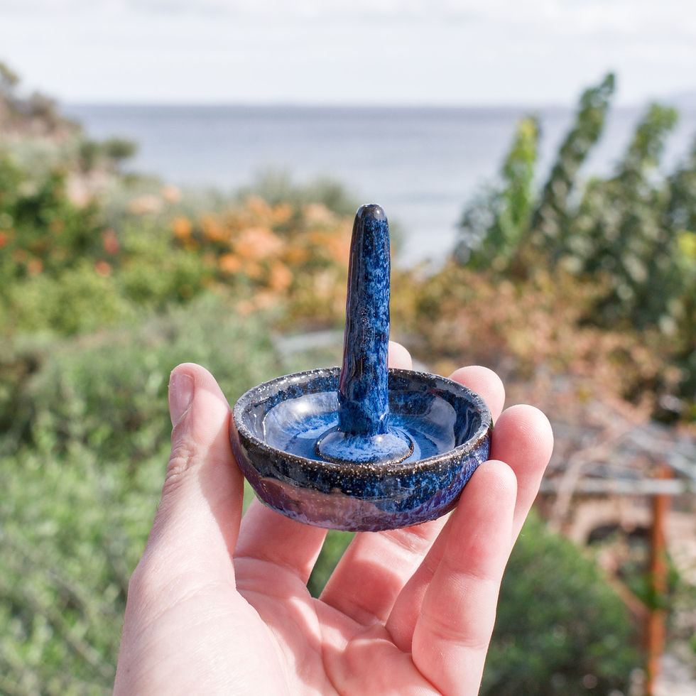 ![]() Handmade Ceramic Jewelry Bowl – A Place for Every TreasureThis handcrafted ceramic jewelry bowl is both a work of art and a functional organizer. Featuring a soft green glaze with delicate speckling, metal hooks for hanging earrings, and a spiral holder at the center for rings, it’s the perfect way to keep your favorite pieces in one place. | ![]() Crackled Blue Ceramic Tumbler – A Sip of the AegeanThis handcrafted ceramic tumbler is wrapped in a stunning crackled blue glaze, reminiscent of ocean waves. The smooth, curved shape feels great in hand, making it perfect for both hot and cold drinks. Every sip comes with a touch of the Mediterranean. | ![]() Blue & White Artisan Plate – Handmade Ceramic Dish with Bold ContrastThis handmade ceramic plate plays with contrast, featuring a bold split of deep blue and soft white glaze. The textured transition adds a unique touch, making every plate one of a kind. Perfect for serving or display, it’s crafted to bring a bit of the Aegean to your table. |